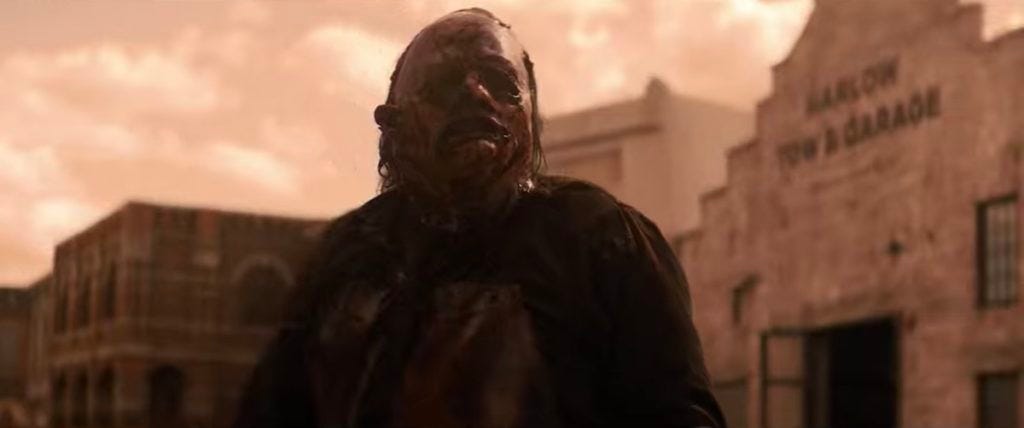 From a storytelling point of view, this is the biggest problem with Texas Chainsaw Massacre: we really shouldn’t be rooting for Leatherface. It’s … unseemly. Granted, the not-so-secret joy of the series has always been watching this monstrous galoot and his family do violence to annoying people (and the victims in this series generally are pretty annoying, just as the victims of Jason and Freddy and Michael Myers and Ghostface have often been quite annoying). Still, there’s a difference between wincing while some annoying hippie kids get chopped up because they trespassed in the wrong house and actively pumping your fist while the most annoying representations of modernity have their blood spilled and their limbs strewn about.