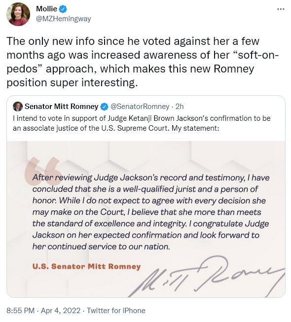 And we get this revolting insinuation from Federalist editor and Bradley Prize winner Mollie Hemingway: