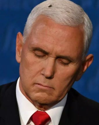 About the vice presidential debate. The fact that a fly stole the show should tell you something. Both sides claimed victory, but the buzz was all about the fly that landed on Mike Pence’s hair, and apparently got stuck there at least for a while.