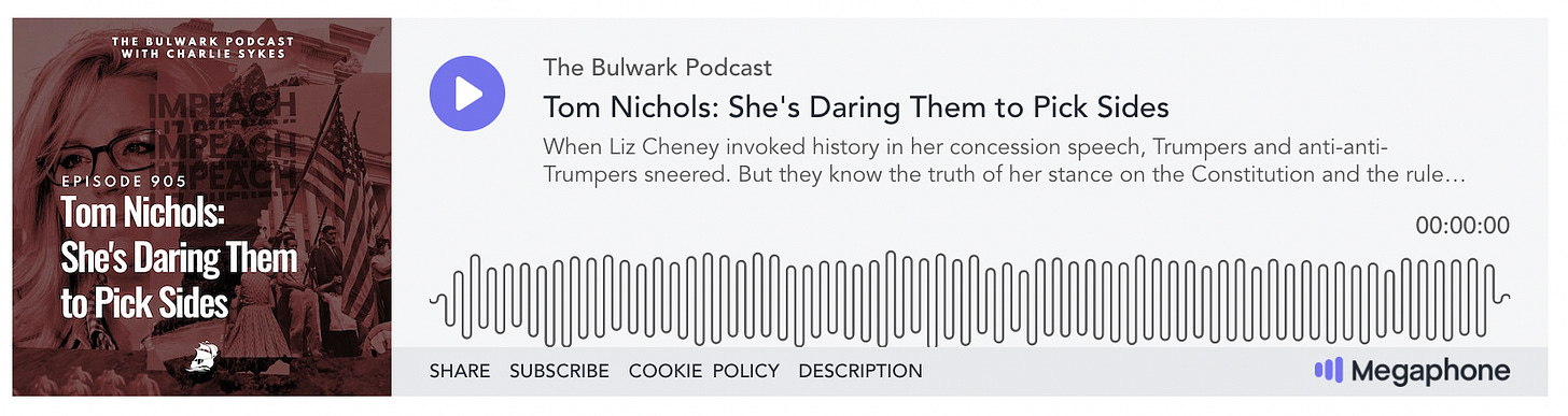 When Liz Cheney invoked history in her concession speech, Trumpers and anti-anti-Trumpers sneered. But they know the truth of her stance on the Constitution and the rule of law, and they know everything about Donald Trump is a lie. Tom Nichols joins Charlie Sykes on today’s podcast.