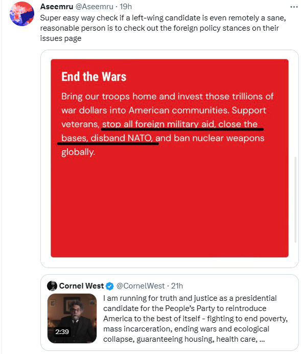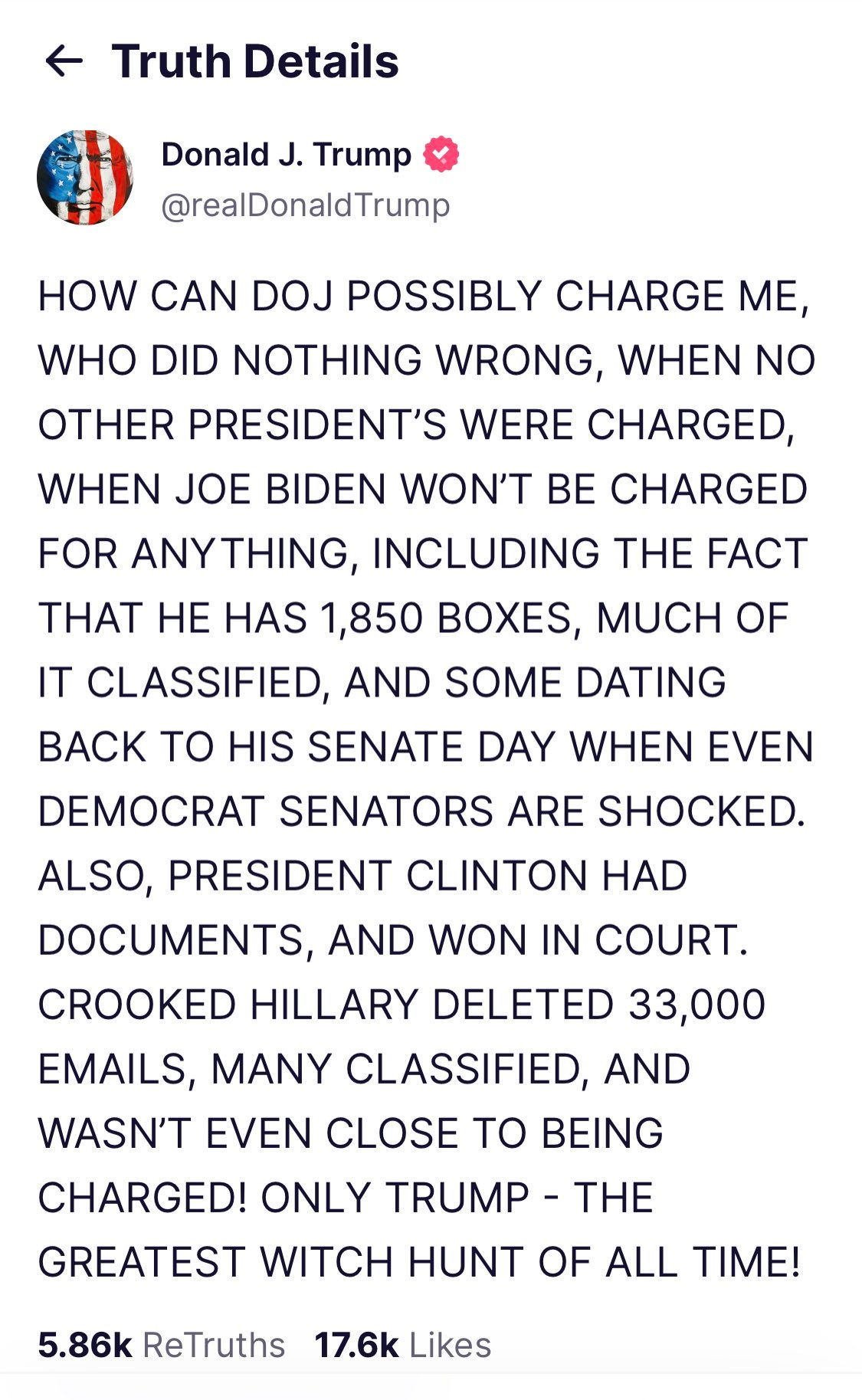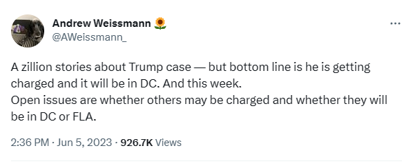 Trent Crimm fromThe Independent: Trump suggests he is about to be charged in Mar-a-Lago classified documents case.Cornel West (!) is in. Pence is in. Christie is in. WSJ: Chris Christie to Enter GOP Presidential Race as Chief Trump Antagonist. (A bunch of other folks also appear to be running. See today’s Bulwark: “Wait, How Many People Are Running for President Now?”)