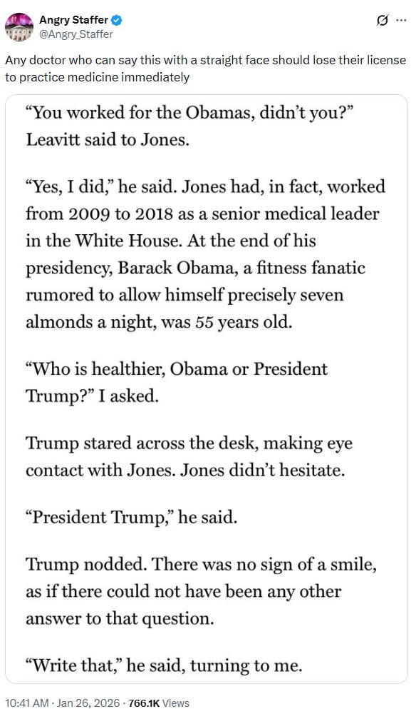 White House Press Secretary Karoline Leavitt conspicuously declined yesterday to defend any of these obscene statements. Instead, she reached for a pair of new, less noxious lies: that President Trump was mourning Pretti’s death as a tragedy, and that DHS would conduct a full and fair investigation.