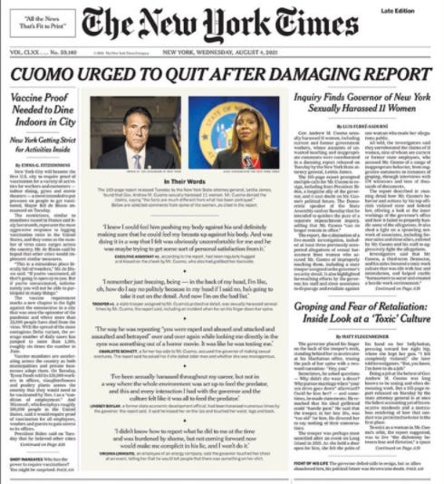 Everyone expected that the AG’s report on allegations of sexual harassment would be damaging for the New York governor and one-time media heart-throb. Instead, it was catastrophic - a parade of horribles, backed by compelling and detailed evidence of Cuomo’s pattern and practice of piggery. The report described a toxic, gropey, creepy, and demeaning workplace, and included evidence that he had illegally harassed 11 women.