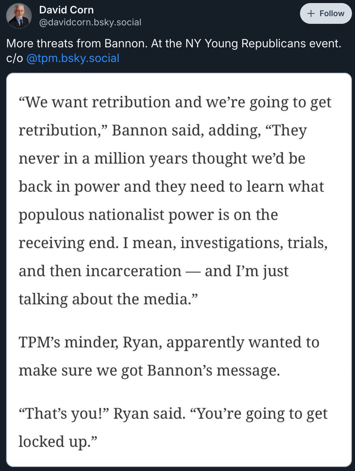 Quote of the year so far, from Donald Trump at Mar-a-Lago yesterday: “In the first term, everyone was fighting me. This time, everybody wants to be my friend.”