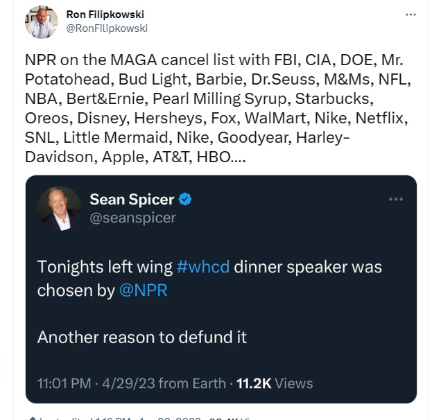 As Ron reminds us, it’s getting hard to keep up with the list of all the folks the MAGA right wants to cancel.