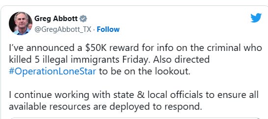 Abbott also referred to the suspected gunman in the case, Francisco Oropesa, as someone “who is in the country illegally” as he announced a reward for information leading to his capture.