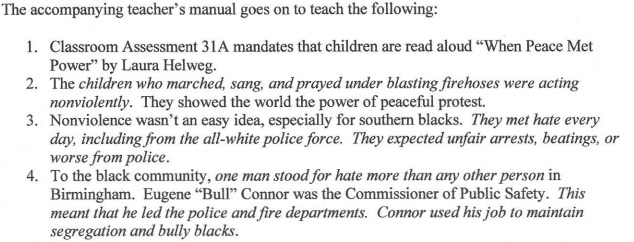 Also objectionable: references to “Bull” Connor and the hateful racism that civil rights activists encountered from all-white police forces.