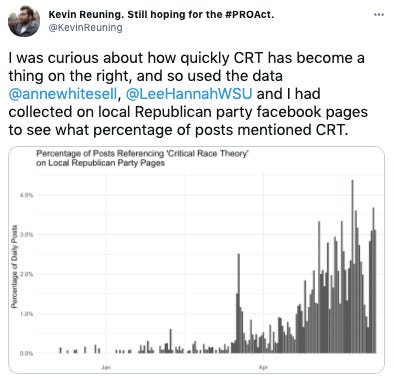 So, even though the vast majority of Americans will never encounter anything remotely like CRT, it becomes a real threat and a potent political weapon.