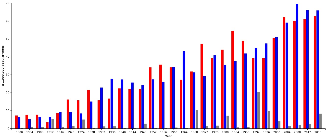 (1) The election will not be held under normal circumstances. I cannot emphasize this enough: It is almost impossible to make useful assumptions about what the pandemic will do to voting. Here is a chart showing the raw number of total votes in presidential elections dating back to 1900.