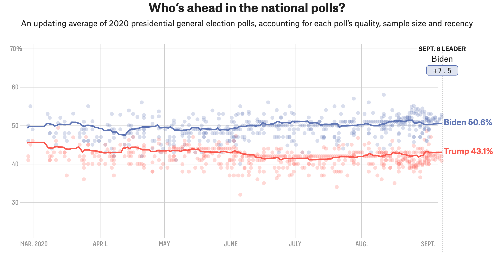To date, Trump has never been closer than -3.4 against Biden.