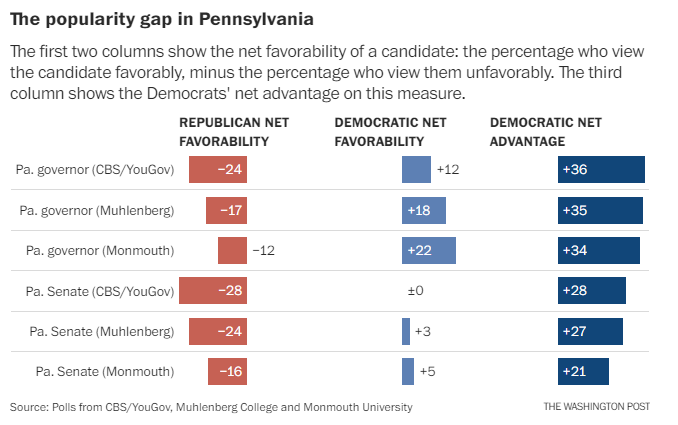 As you know, we’re out of the prediction business here at Morning Shots. But if the GOP fails to capture the senate and key governorships, this chart may explain the party’s “popularity gap” problem. Aaron Blake writes: