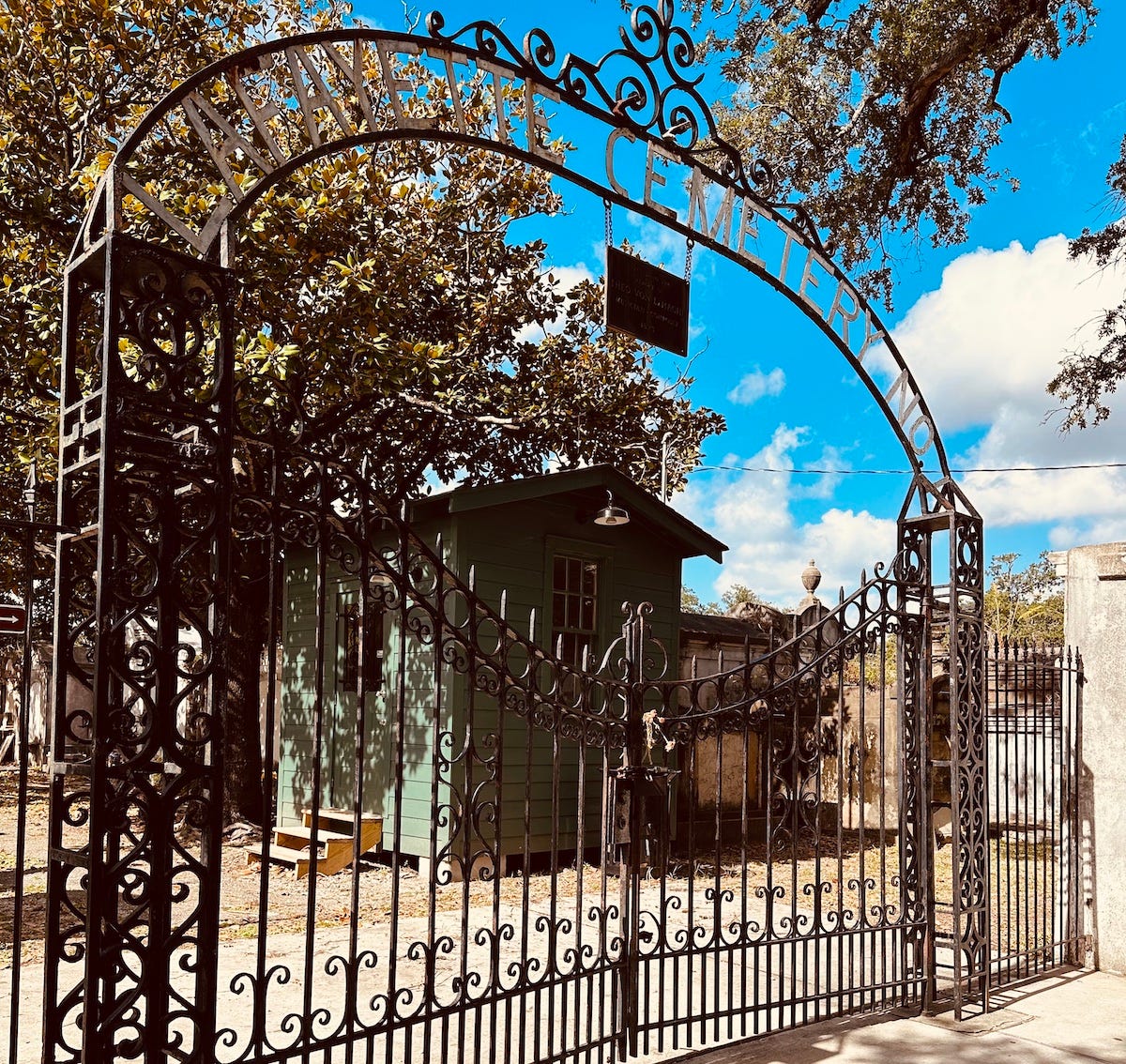 The movie trivia happy hour beforehand was well attended; if you want to check out the questions, you can see them here. Our winner got 20/23 possible points, which I was pretty impressed by. While I was walking through the city, I just so happened to pass by one of my favorite shooting locations: Lafayette Cemetery No. 1. Sadly it was locked so I couldn’t stroll through the graves taking pics and committing other acts of sacrilege, but it was still pretty cool to see: