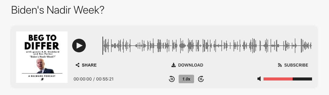 That’s it for me. Tech support questions? Email members@thebulwark.com. Questions for me? Respond to this message.