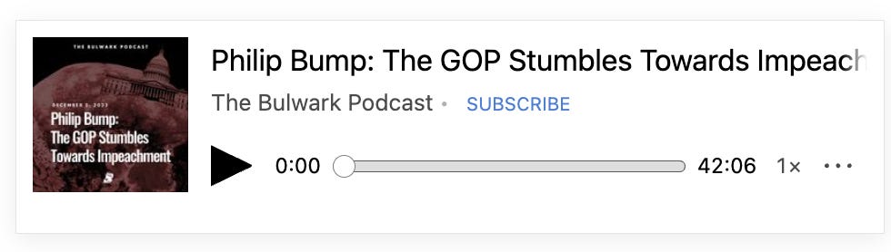 Tech support questions? Email members@thebulwark.com. Questions for me? Respond to this message