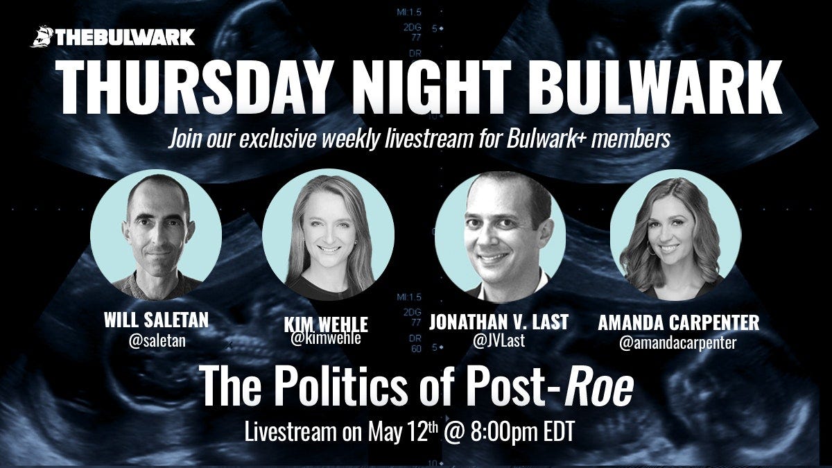 That’s it for me. Tech support questions? Email members@thebulwark.com. Questions for me? Respond to this message.