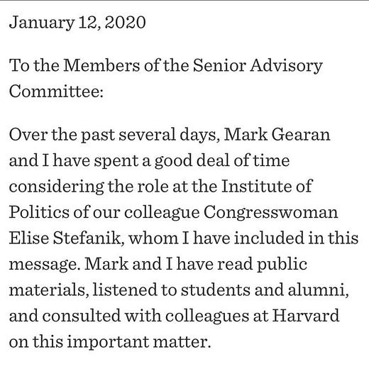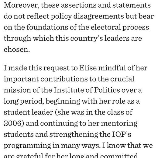 Rep. Stefanik pays the price… Fired by Harvard for her role in promoting unfounded election conspiracy theories.