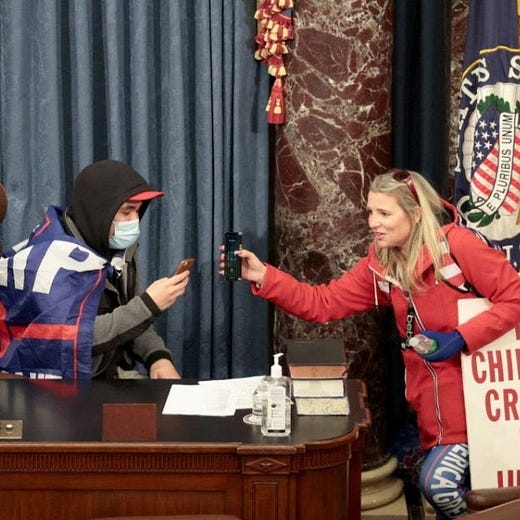 And suddenly she’s storming the Capitol with a bunch of clearly insane people.