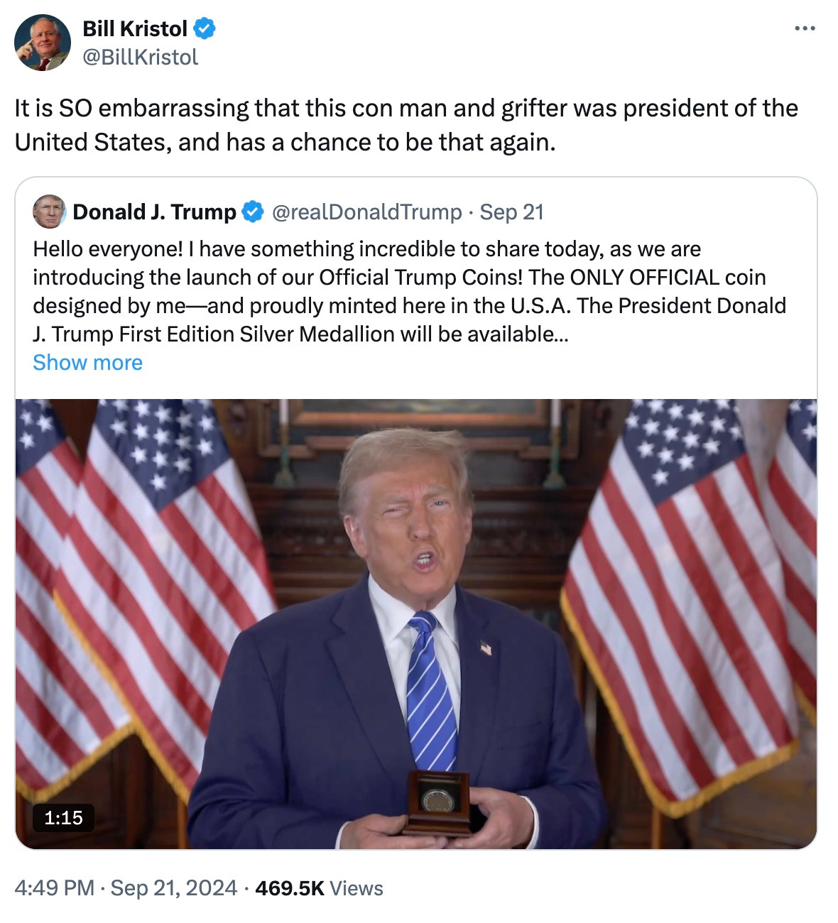 Oh, and an endorsement from Donald Trump. We assume that’s still in effect, at least—although maybe not with the same oomph it had before. Robinson didn’t appear at Trump’s North Carolina rally this weekend, and Trump didn’t mention him from the stage. Instead, the task of giving the Team Trump response fell to JD Vance in an interview with a Pennsylvania NBC affiliate Saturday.
