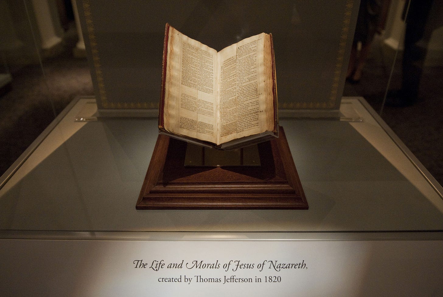 Like Jefferson, Washington—whose own religious beliefs were rather idiosyncratic—was a strong proponent of religious pluralism. But one wonders what he would have thought of another Jeffersonian religious project he never lived to see. For during Jefferson’s first presidential term in office, he embarked on a quiet crusade to save no less than Jesus Christ himself from centuries of superstitious tyranny that obfuscated his role as one of world’s greatest philosophers. And he would do so by literally cutting Jesus out of his scriptural cage.