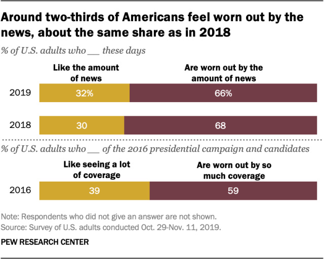 Two years ago, a survey by Pew found that two-third of Americans felt worn out by the amount of news they were getting.