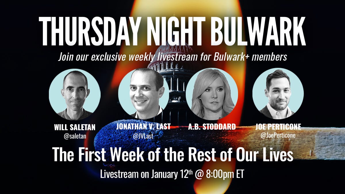 Bulwark+ TakesThe First Week of the Rest of Our Lives [1/12/23]A.B. Stoddard joins this Bulwark LivestreamJan 12, 2023∙ Paid6022ShareWill, Joe, JVL, and special guest A.B. Stoddard discuss Biden’s secret documents, George Santos, Matt Schlapp, and whether insurrectionists are just misinformed patriots.This post is for paid subscribersJoinAlready a paid subscriber? Sign inPreviousNext