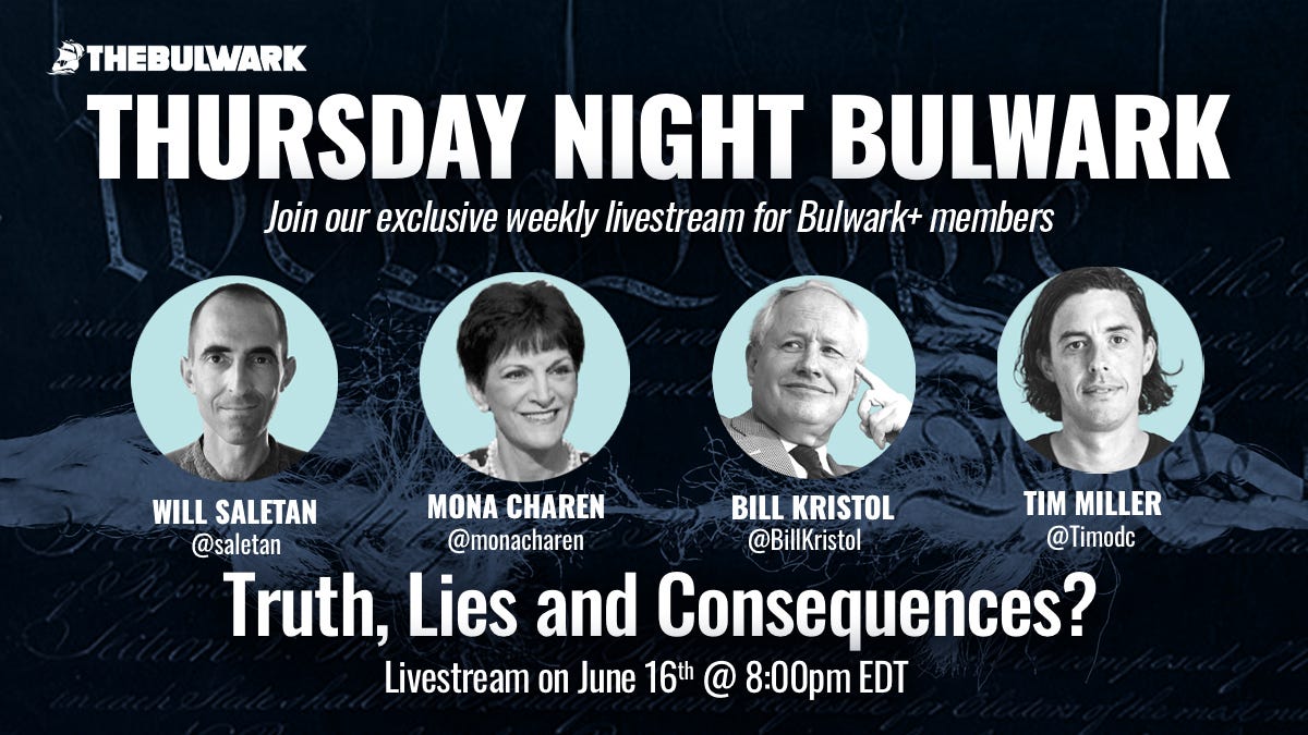 Bulwark+ members can watch on ZOOM and join the live chat or ask questions of our panelists, here.