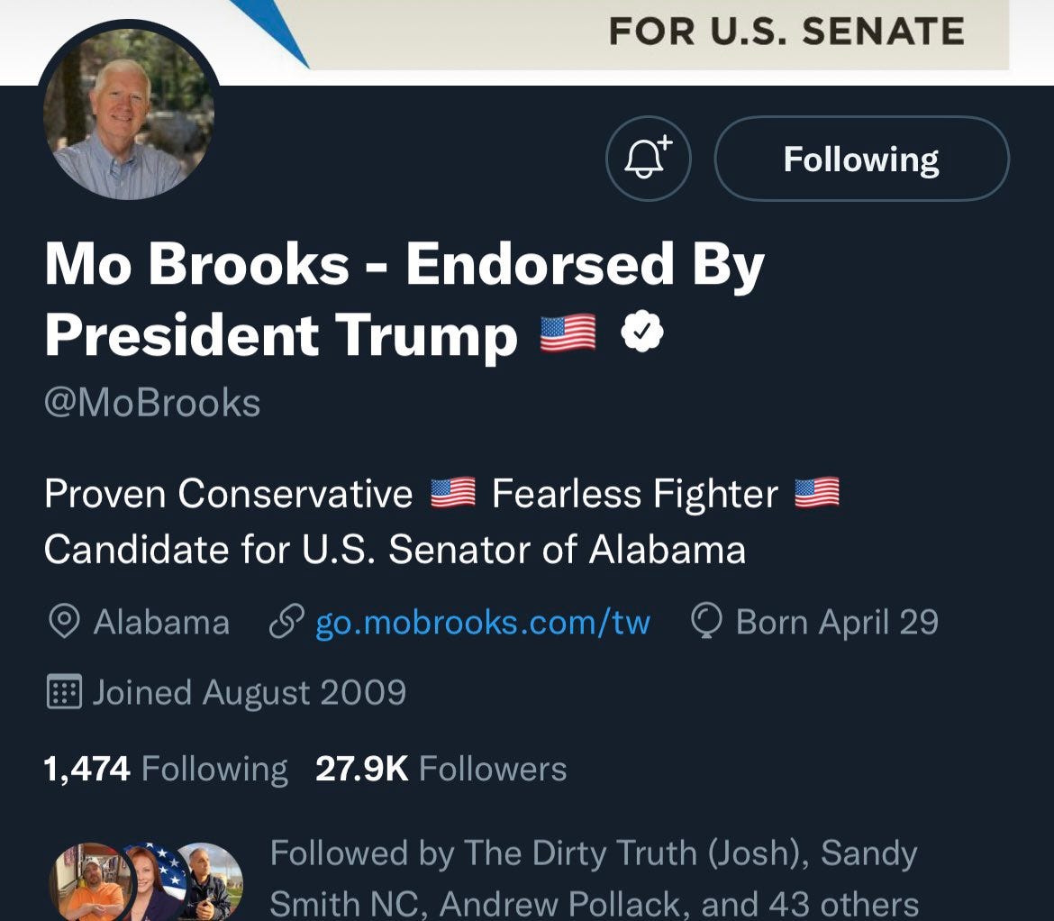 Brooks was so deep into the Big Lie that he continued to insist for months that Trump would have won the 2020 election if only “lawful votes” were counted. His lavish adherence to the MAGA version of reality won him Trump’s endorsement for the senate in Alabama.