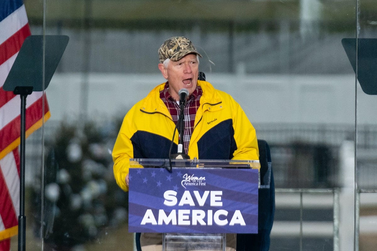 Rep. Mo Brooks, a Republican from Alabama, speaks during a “Save America” rally near the White House in Washington, D.C., on Jan. 6, 2021. Photo: Eric Lee/Bloomberg via Getty Images