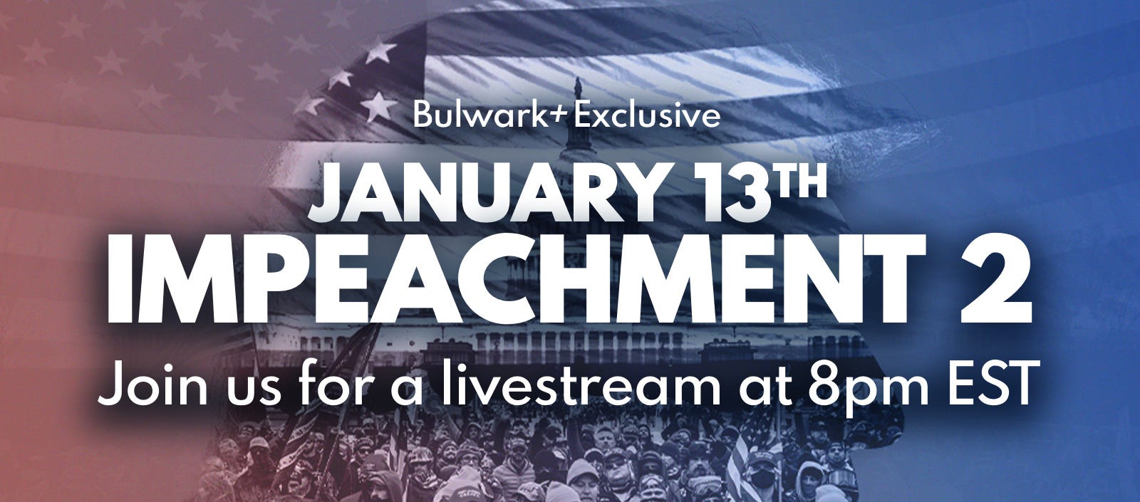 Join us tonight on our livestream! Members of Bulwark+ get access to extra newsletters, podcasts, and livestreams. And we’re doing one tonight with The Bulwark brain trust on today’s impeachment vote.