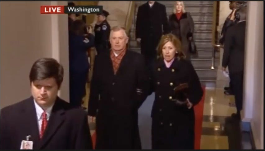 I, for one, am glad that (while I’ve been honored to have been part of Inaugural ceremonies and cover the last three) that this time around I can sleep in and enjoy festivities from home. (Below, me serving as the escort for former VPs at Obama’s 2009 Inaugural.)