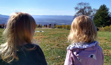 Hope you had a good weekend. The morning after our Bulwark+ livestream, I took the wife, dog, and twins to Skyline Drive. I convinced the twins that the visitor’s center was Smokey the Bear’s house and they had a blast.