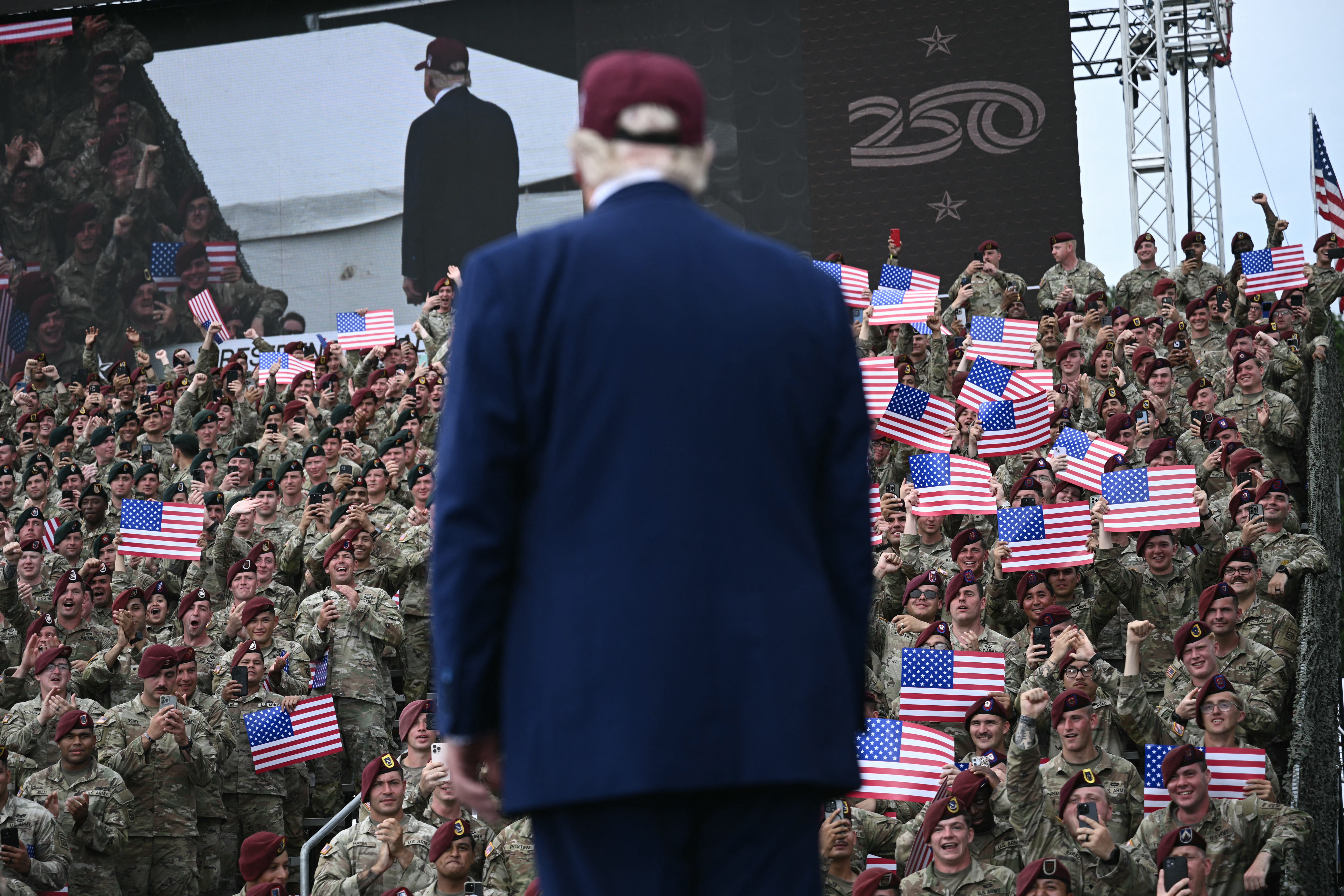 The president yuks it up at Fort Bragg with his personal army and drools over the possibility of smashing protests in the capital.