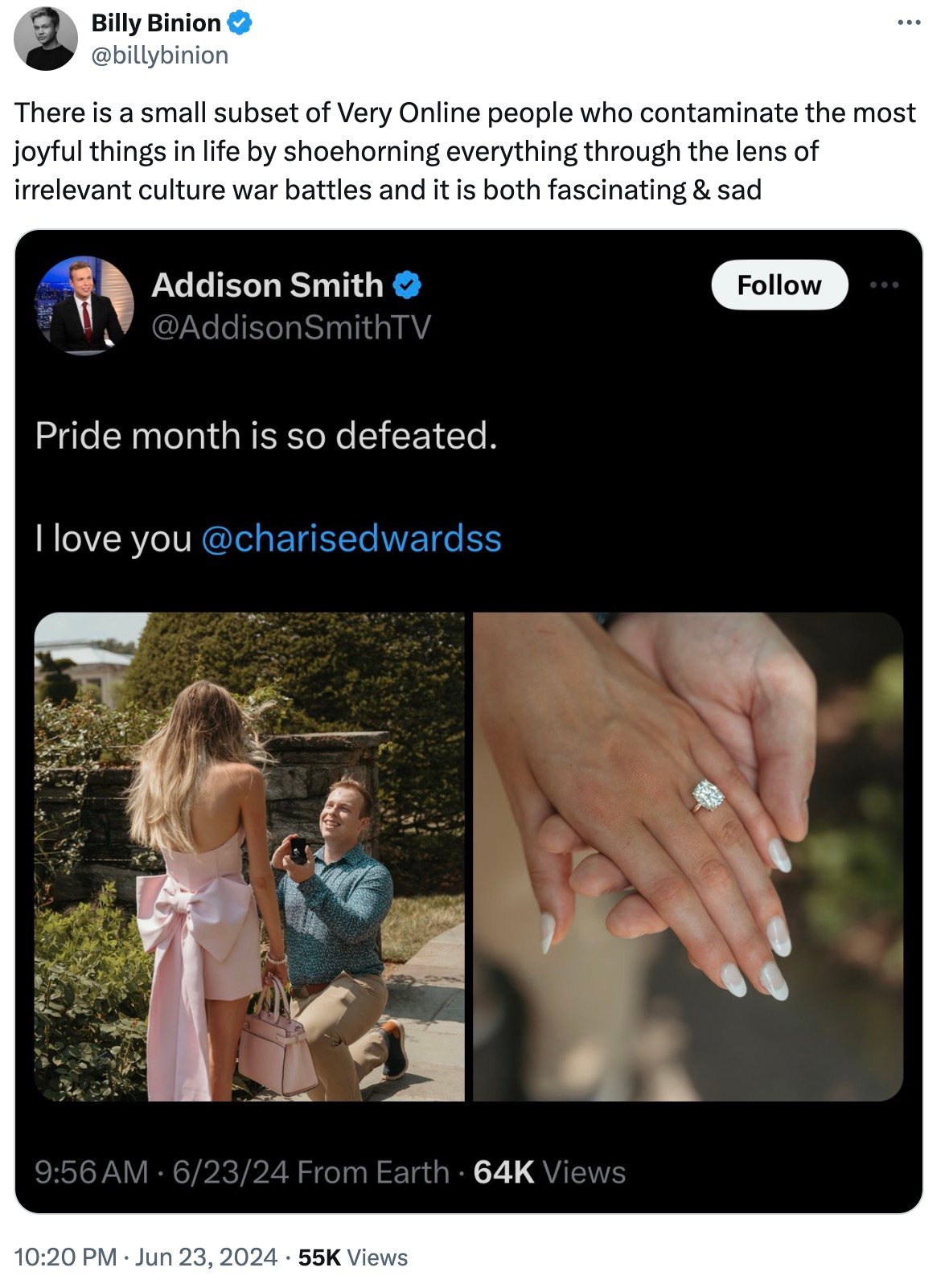 3) True dat to the notion that too many people ruin special moments with their failure to separate politics and other personal opinions from the bigger picture of what is happening around us. I suppose that, in this social media and device-addiction era, we think everything is all about us first and that dignity and ceremony and decorum come in a distant second. Or some people are simply selfish jerks who think that no social rules apply to them. The feeling is kind of like seeing a friend or someone else whose judgment you've come to trust post one of those stupid, superficial memes about a topic that makes them look prejudiced or unthinking or inherently ignorant, and feeling profoundly disappointed that they are not the person you thought they were, and that you can't unsee or unremember it. Yet again technology and social media are more of a curse than a blessing.