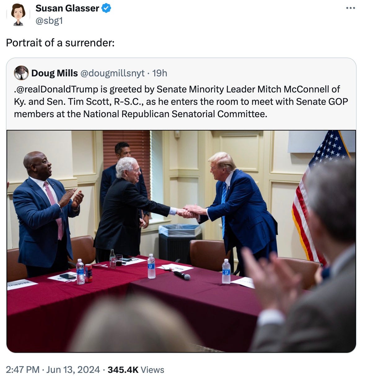 So yesterday marked the culmination of the “normie” Republican’s progress, from “Never Again Trump” in 2021, to “I’d Prefer Not Trump” in 2022 and 2023, to “I’m OK with Trump and I’m Writing a Check” in 2024.