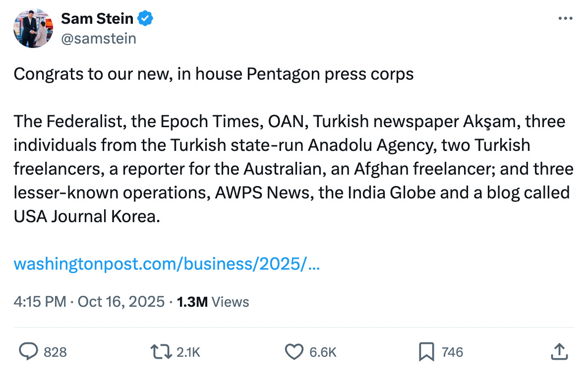 TRUMP ♡ PUTIN … AGAIN?: Over the past month, the Trump pivot toward Ukraine started taking the shape of conventional wisdom. The president talked about Ukraine reclaiming its lands, treated Vladimir Putin as a loser, and even dangled the prospect of sending Volodymyr Zelensky Tomahawk missiles capable of striking deep inside Russia. The Russian opposition gloated that Putin’s arrogance had finally pissed off his would-be best friend.