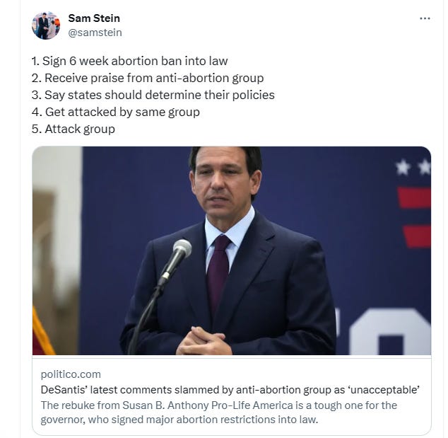There’s no good news for Ron DeSantis; and little hope for the rest of the field, which is putting up a series of feeble single-digits. “The primary isn’t over,” Catoggio writes. “It never began.”