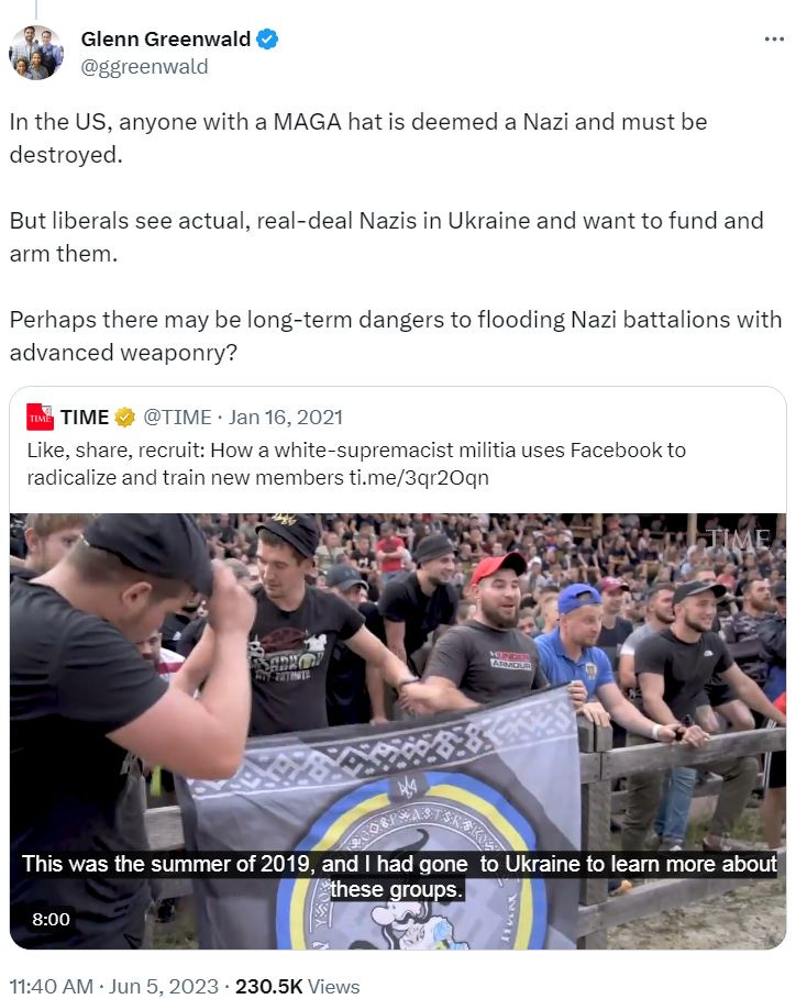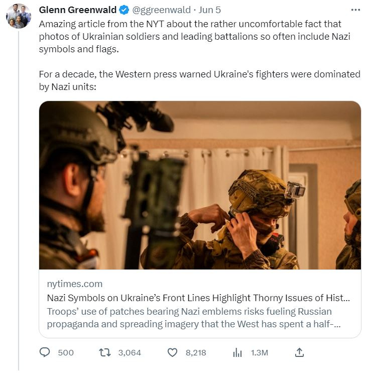 Matt Taibbi found it particularly “disgusting” that some Western journalists had asked Ukrainian soldiers to cover up questionable patches when posing for photos: