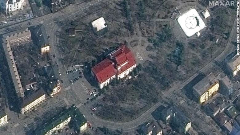 After the bombing on Wednesday, Mariupol City Council shared an image of the building and said Russian forces had "purposefully and cynically destroyed the Drama Theater in the heart of Mariupol."