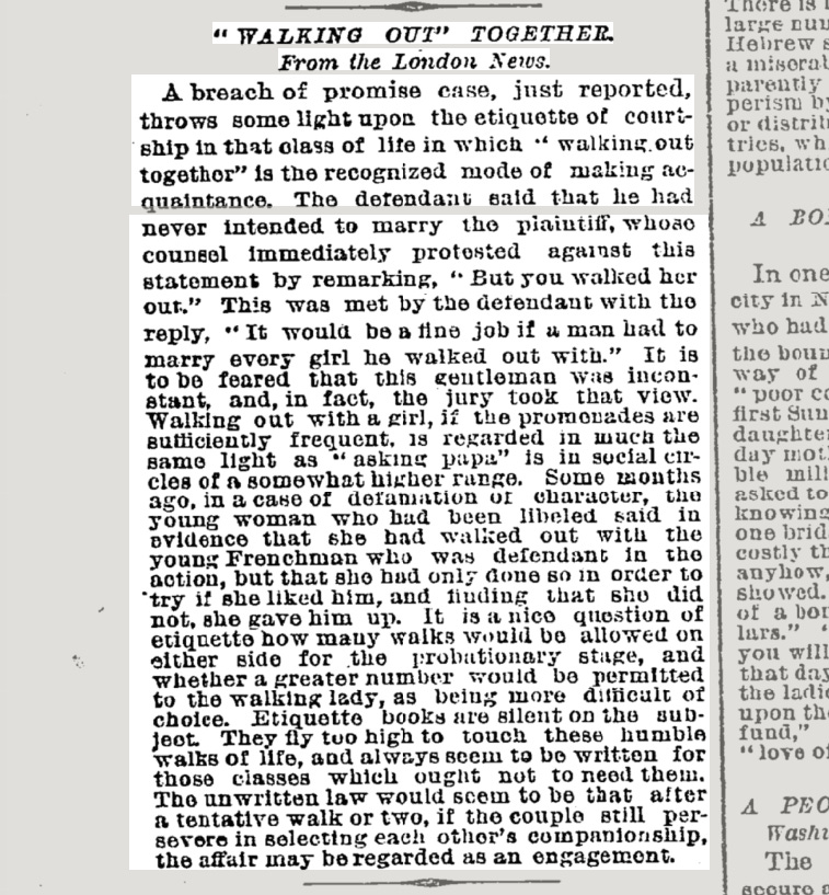 The New York Times on “‘Walking Out’ Together,” May 17, 1888