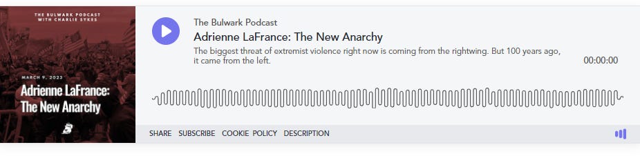 ICYMI: great discussion on yesterday’s Bulwark podcast with the Atlantic’s Adrienne LaFrance about her latest deep-dive into our epidemic of political violence.