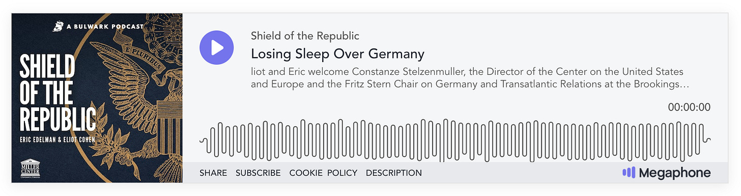 Eliot and Eric welcome Constanze Stelzenmuller, the Director of the Center on the United States and Europe and the Fritz Stern Chair on Germany and Transatlantic Relations at the Brookings Institution.