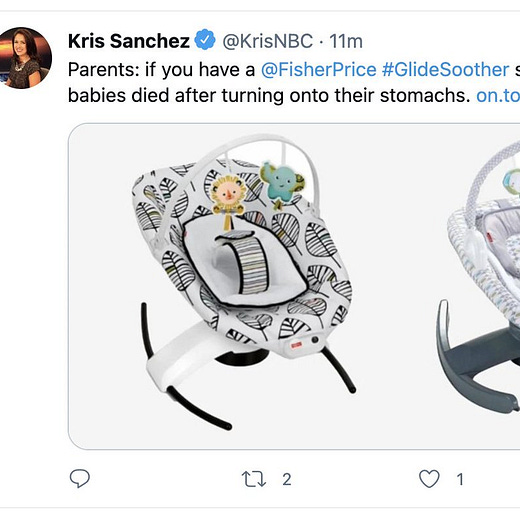 Four infant deaths in six years? And in those cases the parents didn’t follow the directions and restrain their child? The problem is not the product, it’s the parents. When we were raising the twins, the Rock’n’Play sleeper was recalled. It’s also been in the news lately. If we have more kids, I am going to keep using it.