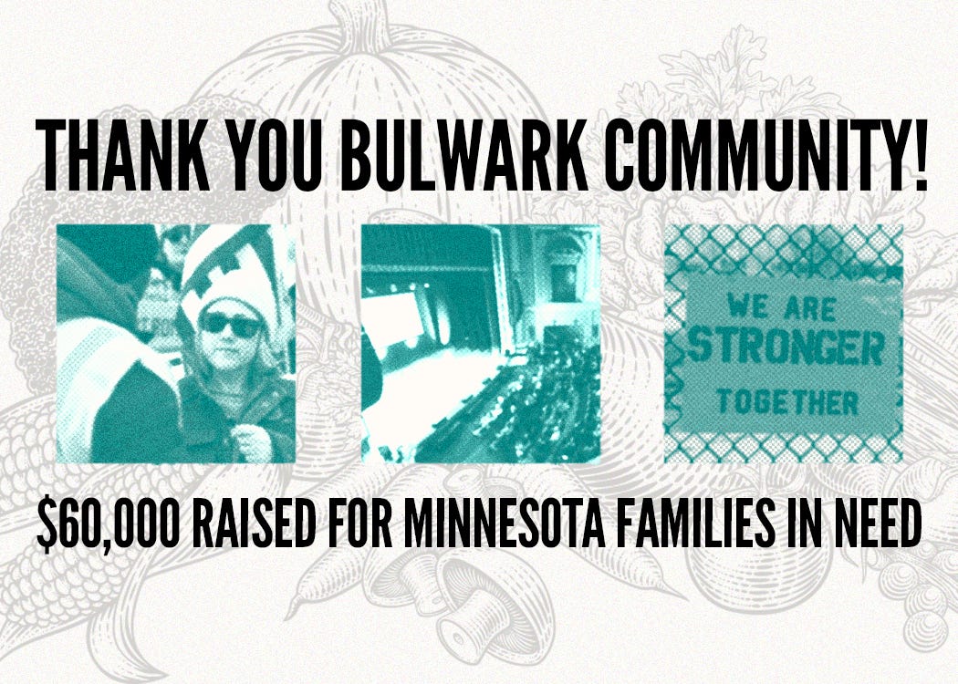 We always say that here at The Bulwark, we don’t have an audience—we have a community. You guys proved it. Now help us keep the help coming for the people of Minnesota. Give whatever you can. It will change somebody’s life.