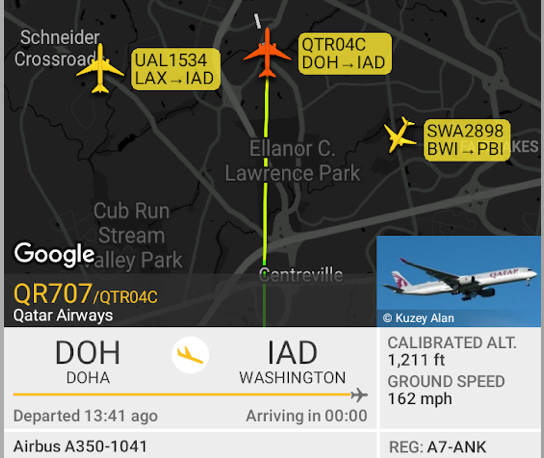As I was fixing the water head (provided the piping isn’t damaged, it’s relatively easy), I noticed that air traffic into Dulles airport was rerouted over our neighborhood. I looked up and saw a plan that looked like it was from Qatar Airways.
