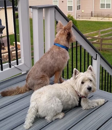 Maybe they’re becoming friends? Rusty, not Gus, was able to tell me there was a dead deer in the woods on a Sunday morning walk, which unleashed a day-long “what do you about a dead deer in your community” litany of phone calls.