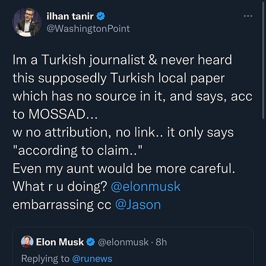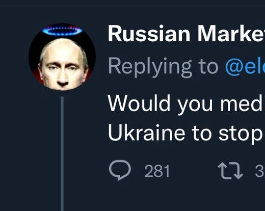 Not only did Elon Musk allow this bit of obvious Russian disinformation on his site … but he amplified it with his own response.