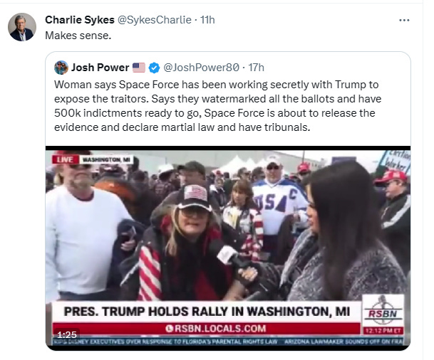 “The fact that you and I are living in a world where it is at least notionally possible that Jim Jordan would become the speaker of the people’s house and in line to the presidency of the United States is so utterly fantastic, not because Jim Jordan is some, transdimensional warlock. But because he’s an idiot…. These Frankensteins were never supposed to get off the table.” — Tom Nichols, the Bulwark podcast.