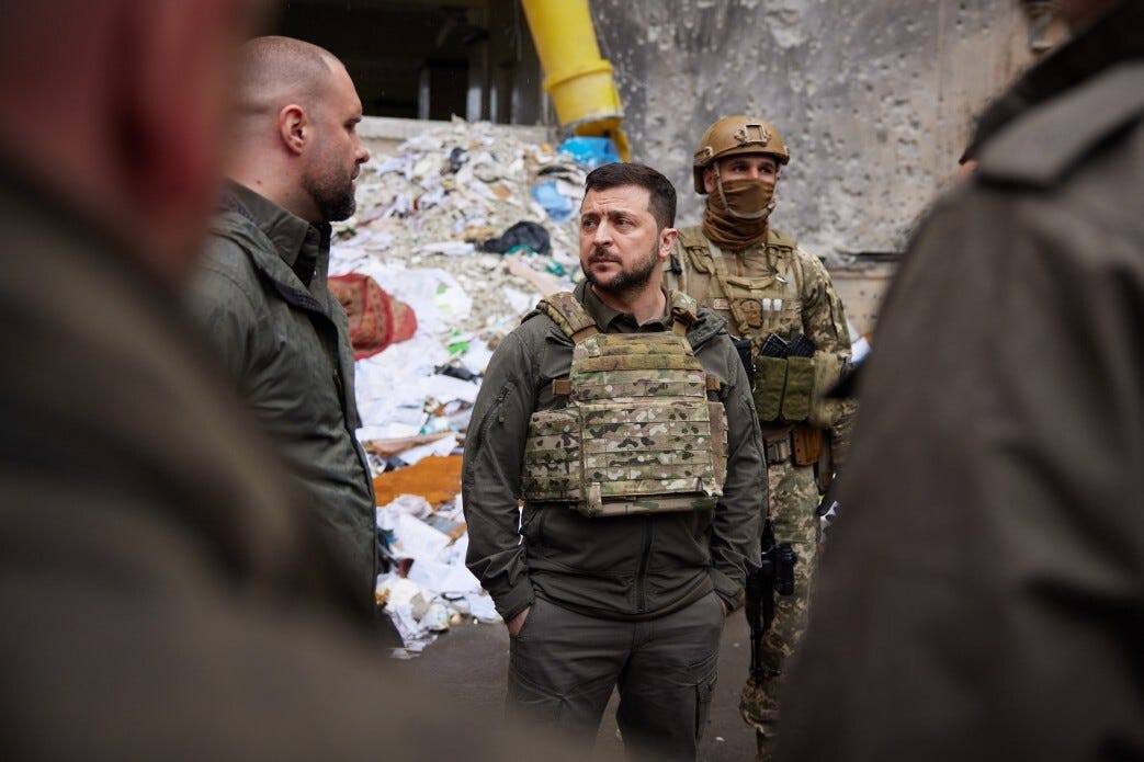 President of Ukraine Volodymyr Zelenskyy visits the Kharkiv region for the first time since Russia started the attacks against his country on February 24, in Kharkiv region, Ukraine on May 29, 2022. (Photo by Ukrainian Presidency/Handout/Anadolu Agency via Getty Images)
